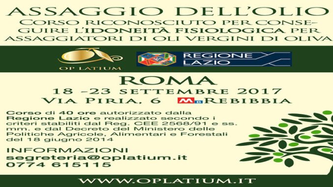 La OP LATIUM organizza un corso per assaggiatori di oli vergini di oliva autorizzato dalla Regione Lazio per l’ottenimento dell’idoneità fisiologica all’assaggio, requisito essenziale per l’iscrizione all’elenco nazionale dei tecnici esperti assaggiatori di olio di oliva.